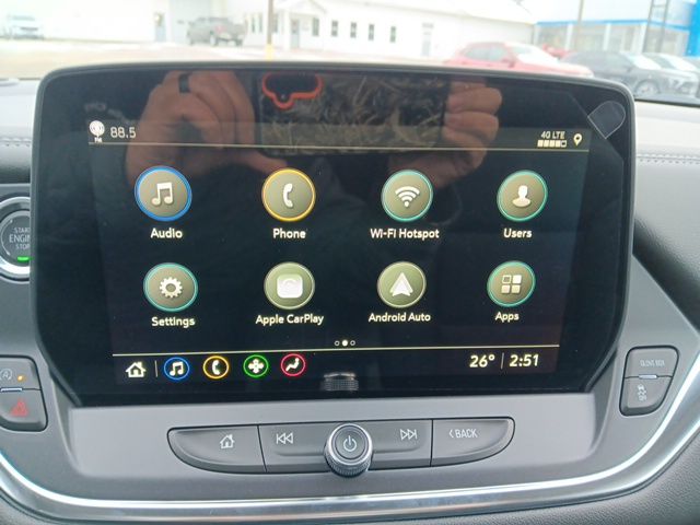 ABS brakes, Alloy wheels, Brake assist, Compass, Front dual zone A/C, Heated door mirrors, Heated front seats, Illuminated entry, Low tire pressure warning, Power Liftgate, Remote keyless entry, Traction control, 3.47 Final Drive Ratio, 4-Wheel Disc Brakes, 6 Speakers, 6-Speaker Audio System Feature, 6-Way Power Front Passenger Seat Adjuster, 8-Way Power Driver Seat Adjuster, Air Conditioning, AM/FM radio: SiriusXM with 360L, Apple CarPlay/Android Auto, Auto High-beam Headlights, Auto-dimming door mirrors, Auto-dimming Rear-View mirror, Automatic temperature control, Brake assist, Bumpers: body-color, Child-Seat-Sensing Airbag, Delay-off headlights, Driver door bin, Driver vanity mirror, Dual front impact airbags, Dual front side impact airbags, Emergency communication system: OnStar and Chevrolet connected services capable, Four wheel independent suspension, Front anti-roll bar, Front Bucket Seats, Front Center Armrest, Front reading lights, Fully automatic headlights, Garage door transmitter, Heated Driver and Front Passenger Seats, Knee airbag, Leather Shift Knob, Leather steering wheel, Occupant sensing airbag, Outside temperature display, Overhead airbag, Overhead console, Panic alarm, Passenger door bin, Passenger vanity mirror, Perforated Leather-Appointed Seat Trim, Power door mirrors, Power Driver Lumbar Control, Power driver seat, Power passenger seat, Power steering, Power windows, Premium audio system: Chevrolet Infotainment 3 Plus, Radio data system, Radio: Chevrolet Infotainment 3 Plus System, Rear anti-roll bar, Rear reading lights, Rear seat center armrest, Rear window defroster, Rear window wiper, Ride and Handling Suspension, Security system, SiriusXM with 360L Trial Subscription, Speed control, Speed-sensing steering, Split folding rear seat, Spoiler, Steering wheel mounted audio controls, Stop-Start Engine Control System, Tachometer, Telescoping steering wheel, Tilt steering wheel, Trip computer, Turn signal indicator mirrors, Variably intermittent wipers, Voltmeter, Wheels: : 18" Grazen Metallic Aluminum, and Wireless Apple CarPlay/Wireless Android Auto.