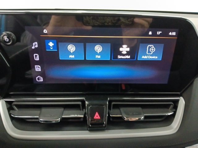 1 Type-An and 1 Type-C USB Ports, 3.17 Final Drive Axle Ratio, 4-Way Manual Front Passenger Seat Adjuster, 4-Wheel Disc Brakes, 6 Speakers, 6-Speaker Audio System Feature with Amplifier, 6-Way Manual Driver Seat Adjuster, ABS brakes, Air Conditioning, Alloy wheels, AM/FM radio: SiriusXM, Auto High-beam Headlights, Brake assist, Brake assist, Bumpers: body-color, Cloth Seat Trim, Compass, Delay-off headlights, Driver door bin, Driver vanity mirror, Dual front impact airbags, Dual front side impact airbags, Emergency communication system: OnStar and Chevrolet connected services capable, Exterior Parking Camera Rear, Flat-Folding Front Passenger Seatback, Front anti-roll bar, Front Bucket Seats, Front Center Armrest, Front reading lights, Front wheel independent suspension, Fully automatic headlights, Heated door mirrors, Illuminated entry, Knee airbag, Low tire pressure warning, Occupant sensing airbag, Overhead airbag, Overhead console, Panic alarm, Passenger door bin, Passenger vanity mirror, Power door mirrors, Power steering, Power windows, Radio data system, Radio: AM/FM Stereo Audio System, Rear side impact airbag, Rear window defroster, Rear window wiper, Remote keyless entry, Ride and Handling Suspension, Security system, SiriusXM Trial Subscription, Speed control, Split folding rear seat, Spoiler, Steering wheel mounted audio controls, Tachometer, Telescoping steering wheel, Tilt steering wheel, Traction control, Trip computer, Variably intermittent wipers, Wheels: 17" High Gloss Black Machined Aluminum, and Wireless Apple CarPlay/Android Auto.