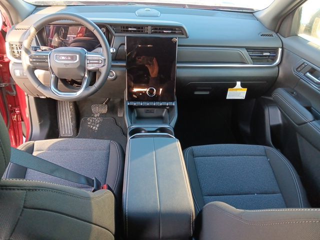 3.47 Final Drive Axle Ratio, 4-Wheel Disc Brakes, 6 Speakers, 6-Speaker Audio System Feature, ABS brakes, Air Conditioning, Alloy wheels, AM/FM radio: SiriusXM, Auto High-beam Headlights, Automatic temperature control, Brake assist, Brake assist, Bumpers: body-color, Compass, Delay-off headlights, Driver 6-Way Manual Seat Adjuster, Driver and Front Passenger Heated Seats, Driver door bin, Driver vanity mirror, Dual front impact airbags, Dual front side impact airbags, Emergency communication system: OnStar and GMC connected services capable, Four wheel independent suspension, Front anti-roll bar, Front Bucket Seats, Front Center Armrest, Front Passenger 4-Way Manual Seat Adjuster, Front reading lights, Fully automatic headlights, Heated door mirrors, Heated front seats, Heated steering wheel, Illuminated entry, Low tire pressure warning, Navigation System, Occupant sensing airbag, Outside temperature display, Overhead airbag, Panic alarm, Passenger door bin, Passenger vanity mirror, Power door mirrors, Power steering, Power windows, Premium Cloth Seat Trim, Radio data system, Radio: Premium GMC Infotainment System, Rear air conditioning, Rear anti-roll bar, Rear seat center armrest, Rear window defroster, Rear window wiper, Remote keyless entry, Security system, SiriusXM with 360L Trial Subscription, Speed control, Speed-sensing steering, Split folding rear seat, Spoiler, Sport steering wheel, Steering wheel mounted audio controls, Tachometer, Telescoping steering wheel, Tilt steering wheel, Traction control, Trip computer, Variably intermittent wipers, Wheels: 17" Grazen Metallic Machined Aluminum, and Wireless Apple CarPlay/Wireless Android Auto.